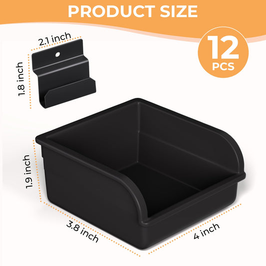 INCLY 12 Pack Slatwall Bins with Hooks, Plastic Slatwall Accessories Containers Bins for Slat Wall Panels Organizing Hardware, Garage, Craft Room, Kitchen, Tool Shed, Workbench