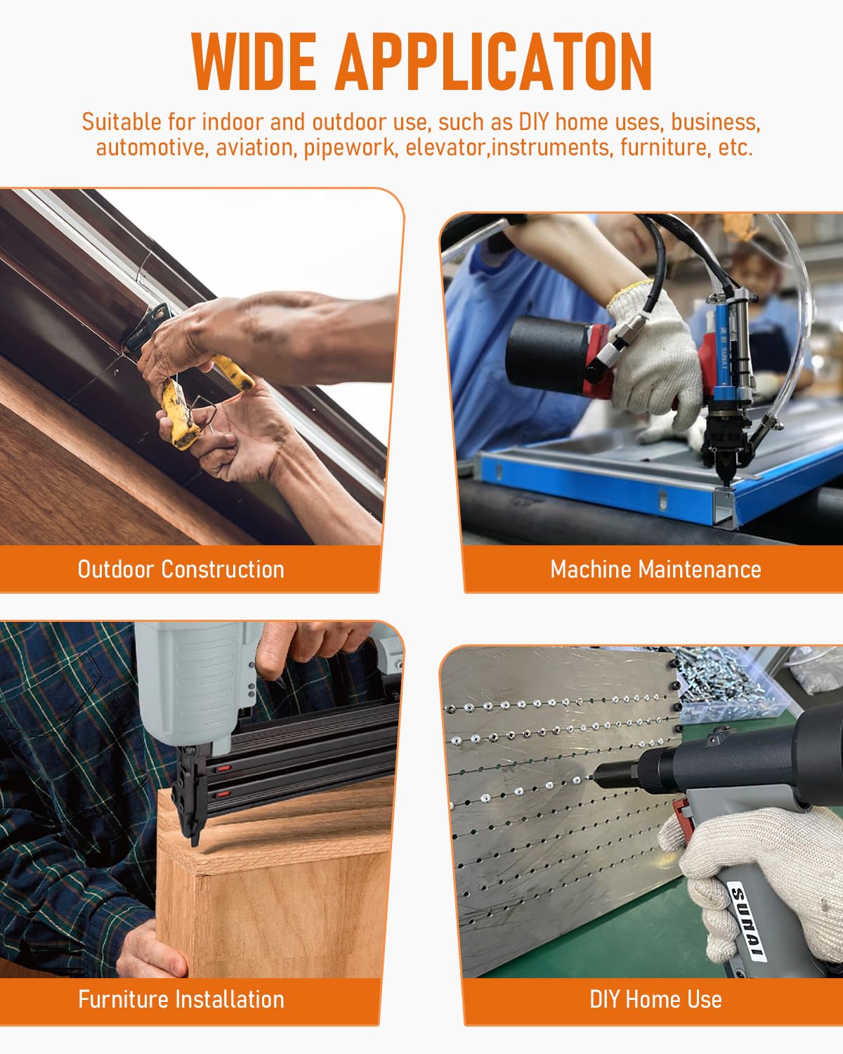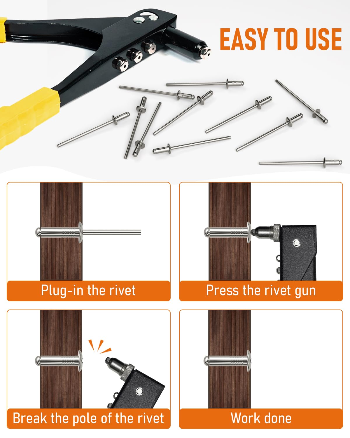 - Rivet Kit Widely Applications: Stainless steel pop rivets with washers are suitable for indoor and outdoor use, such as DIY home uses, business, automotive, aviation, pipework, laminates,instruments, furniture and so on for various needs.