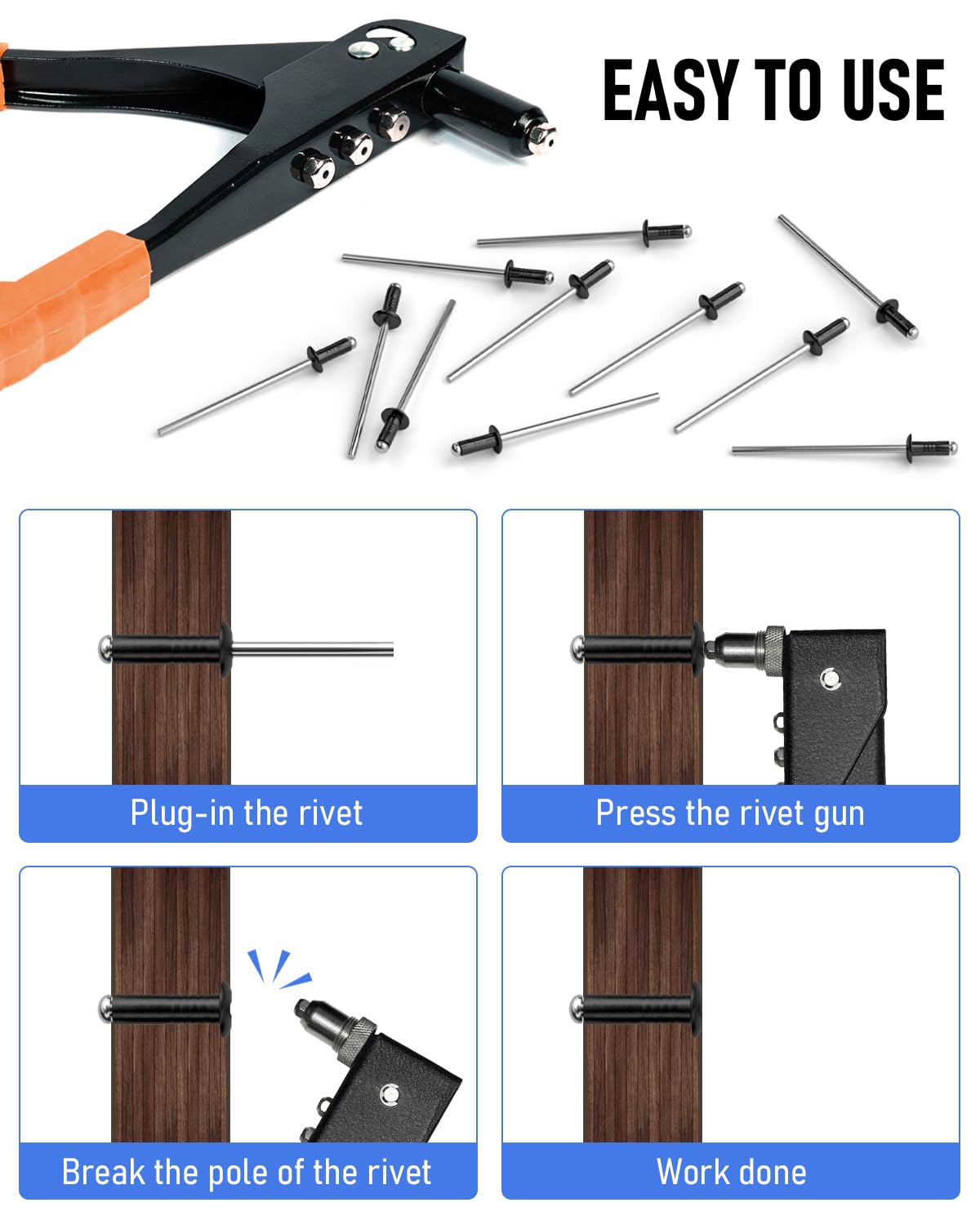 - 【Black Rivets Assortment Widely Applications】: Stainless steel pop rivets with washers are suitable for indoor and outdoor use, such as DIY home uses, business, automotive, aviation, pipework, laminates,instruments, furniture and so on for various needs.