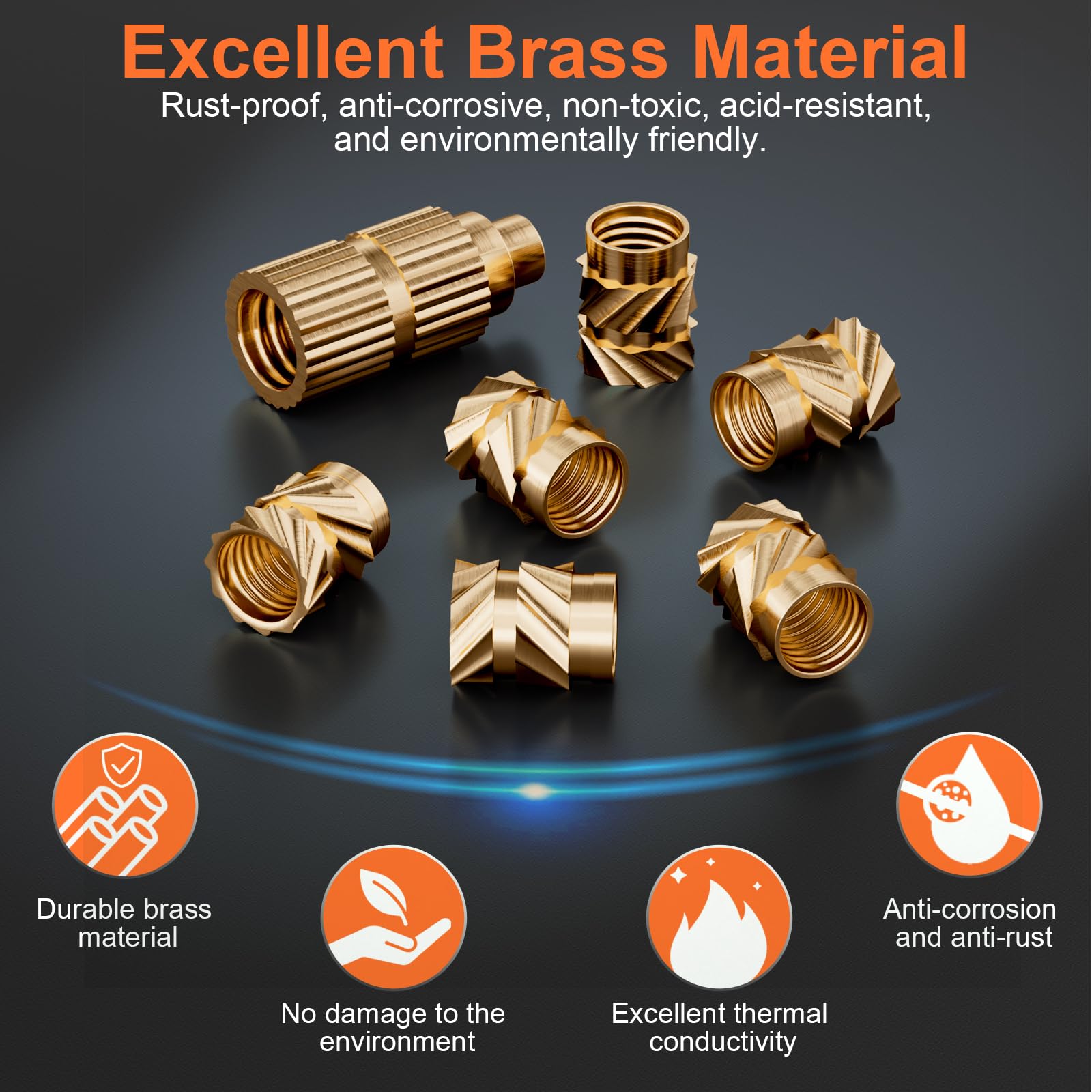 - 【Premium Brass Material】M3 inserts are made from high-quality brass, these threaded inserts for plastic deliver excellent thermal conductivity, corrosion resistance, and long-lasting durability. They resist breakage and deformation, even under extreme conditions—withstanding temperatures over 300°C / 572°F, making them ideal for heat-based installation in 3D printing and plastic molding.