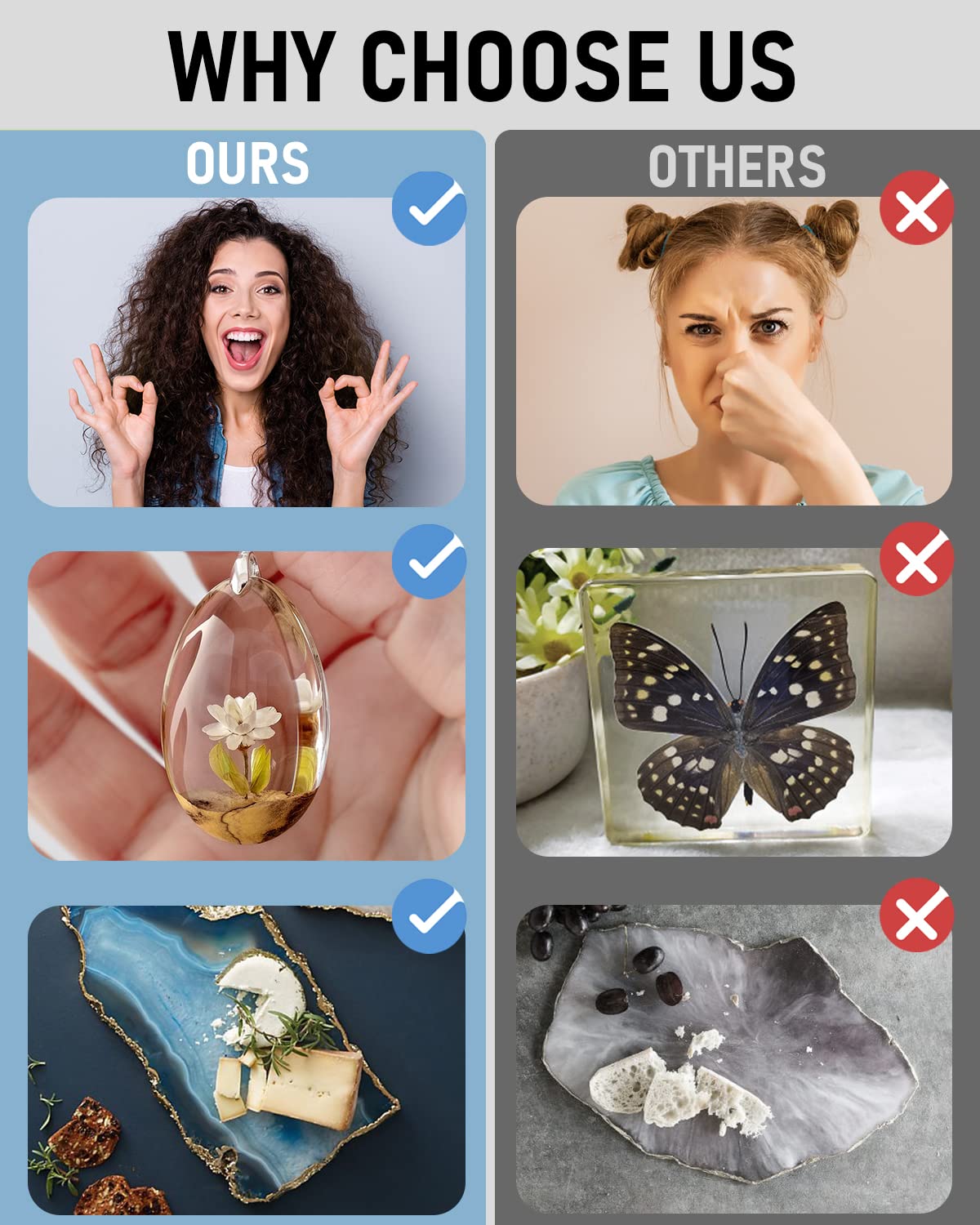 - Safe Use & Non Toxic: our epoxy resin is made with non-toxic materials, completely odorless, and non-flammable, food safe for home use, harmless to you and the environment.