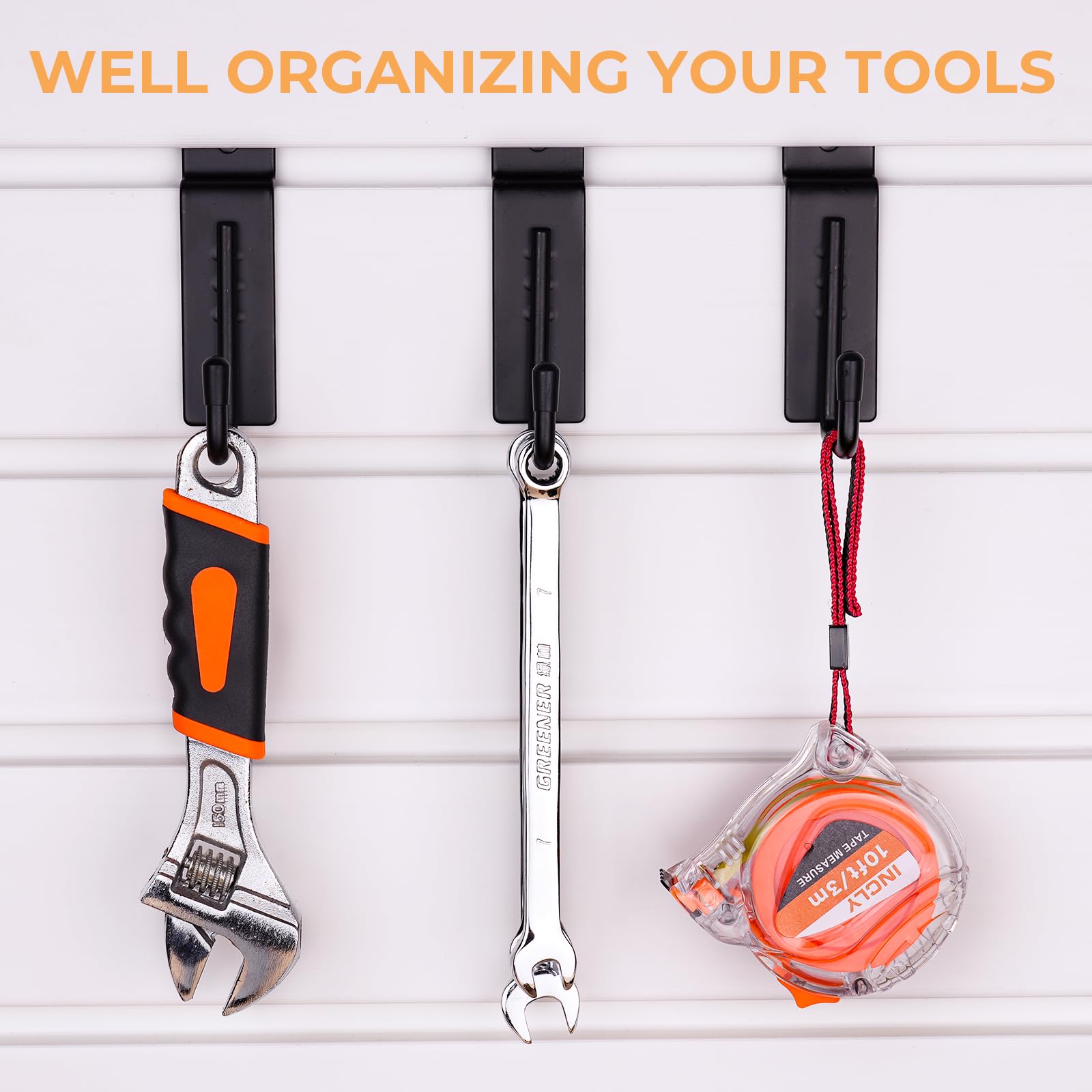 - WIDE APPLICATION: The slat wall hangers are ideal for storage solutions on a wide range of garage, workbench, kitchen, craft room, sewing room, workshop, basement, store, tool sheds, warehouse. Or for displaying you jewelry like earing or necklace