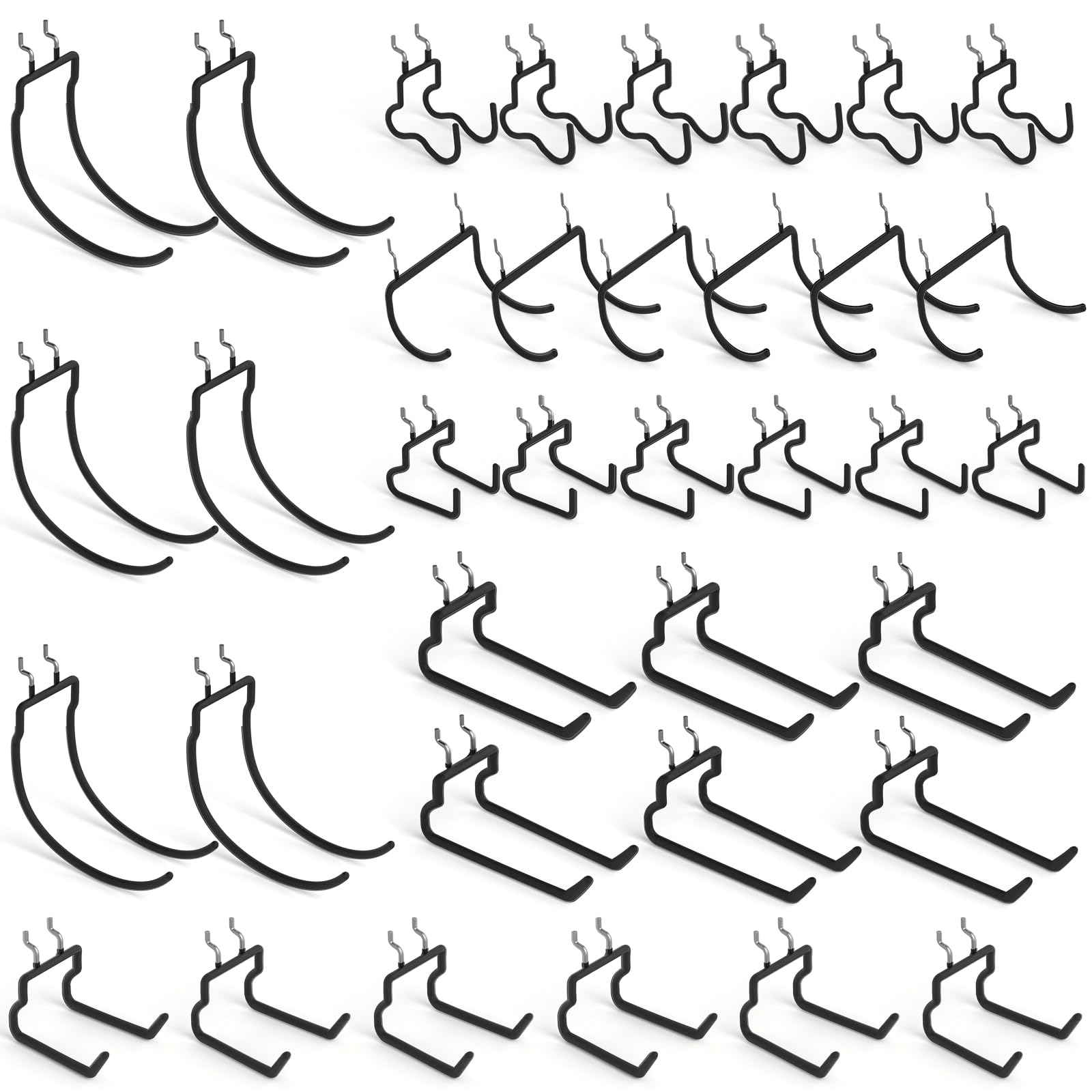 - VALUABLE PACKAGE: The pegboard hooks set comes with 6 types, 6 pcs for each type, totally 36pcs peg board tool hangers, hose holder, power tool holder, double-arm tool holder, small double arm curved holder, 4" double-arm holder and 6" double-arm holder. Max load bearing 20LBS