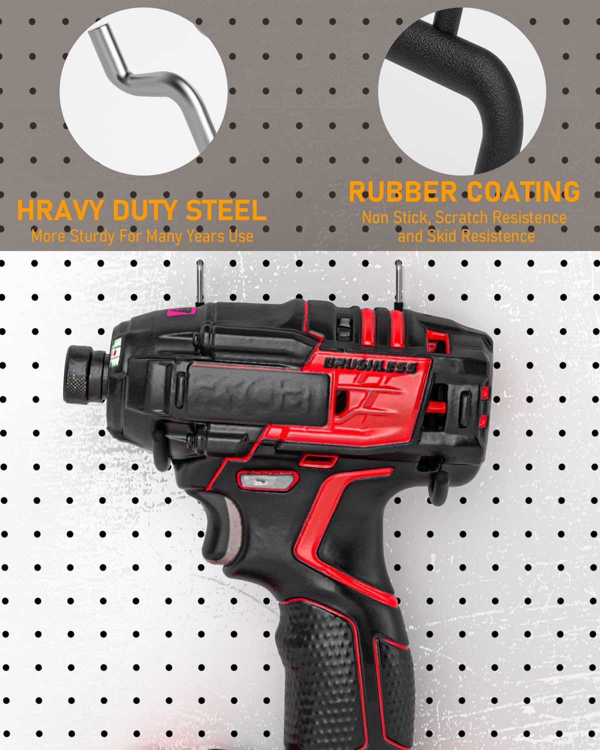 - PREMIUM MATERIAL: Our heavy duty pegboard hooks are made of high-quality steel, so there is no need to worry about it being deformed. In addition, outer vinyl-coating combines with fine surface finish, which have good performance in rust resistance, corrosion resistance and scratch resistence