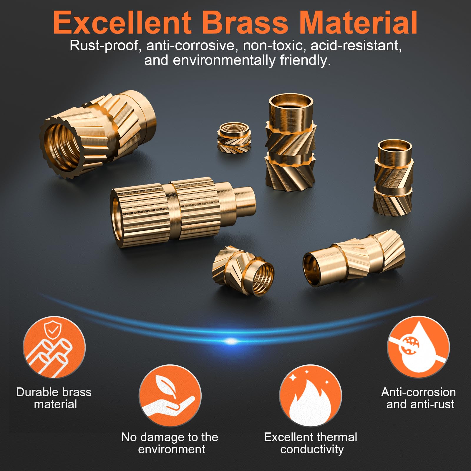 - 【High Quality Brass Material】Threaded inserts for plastic are made of high quality brass,which has excellent thermal conductivity, anti-oxidation , durability properties, and does not release harmful substances, ensuring ensuring that each nut inserts will last for a long time.