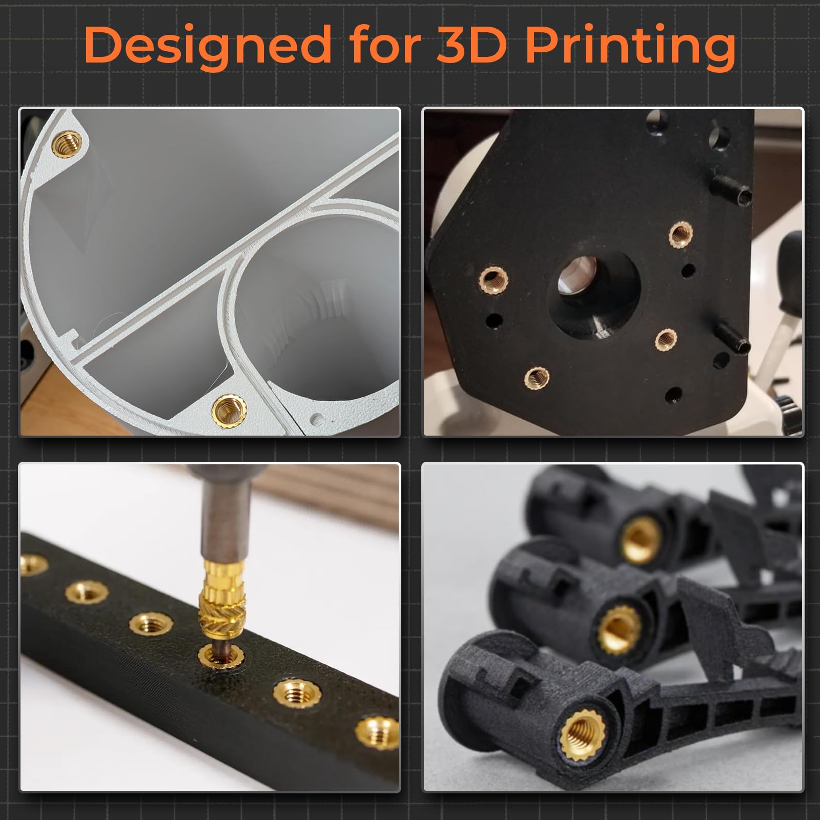 - 【Easy to Use】Brass threaded inserts for 3d printing can be mounted into parts of 3D printers by heat set threaded inserts, ultrasonic.Another major use is to inject the product into some plastic parts, which can form an effective internal thread after installation.