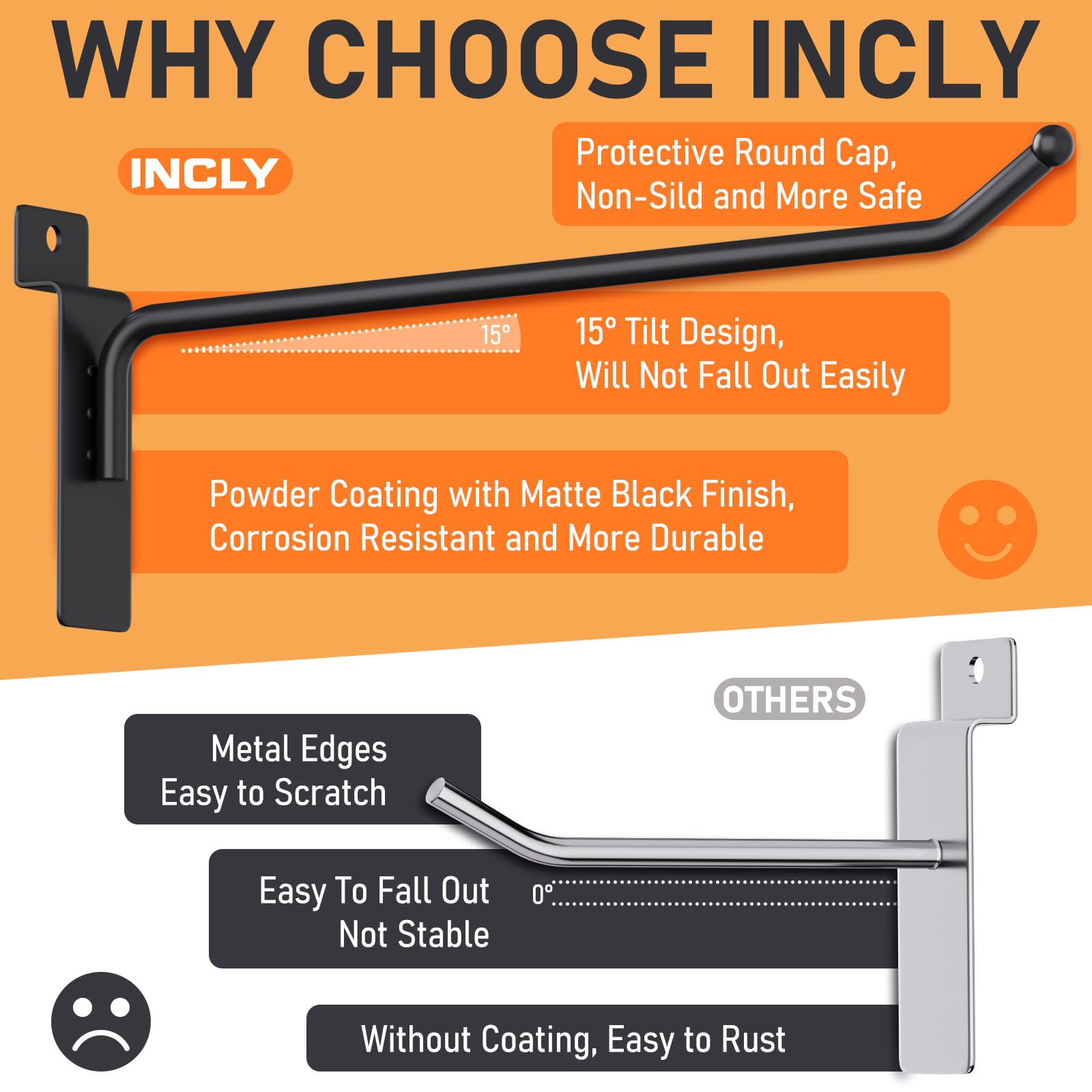 - FIT STANDARD SLATWALL: The INCLY slat wall hanging hooks are designed to fit standard slatwall panels like Proslat, Crownwall, StoreWALL, HandiWall, Garage King, Garage Tek, Hello Garage Slatwall. DO NOT FIT Brands: Gladiator, Husky, Suncast, Craftsman and Rubbermaid FastTrack. Please double check your slat wall before ordering