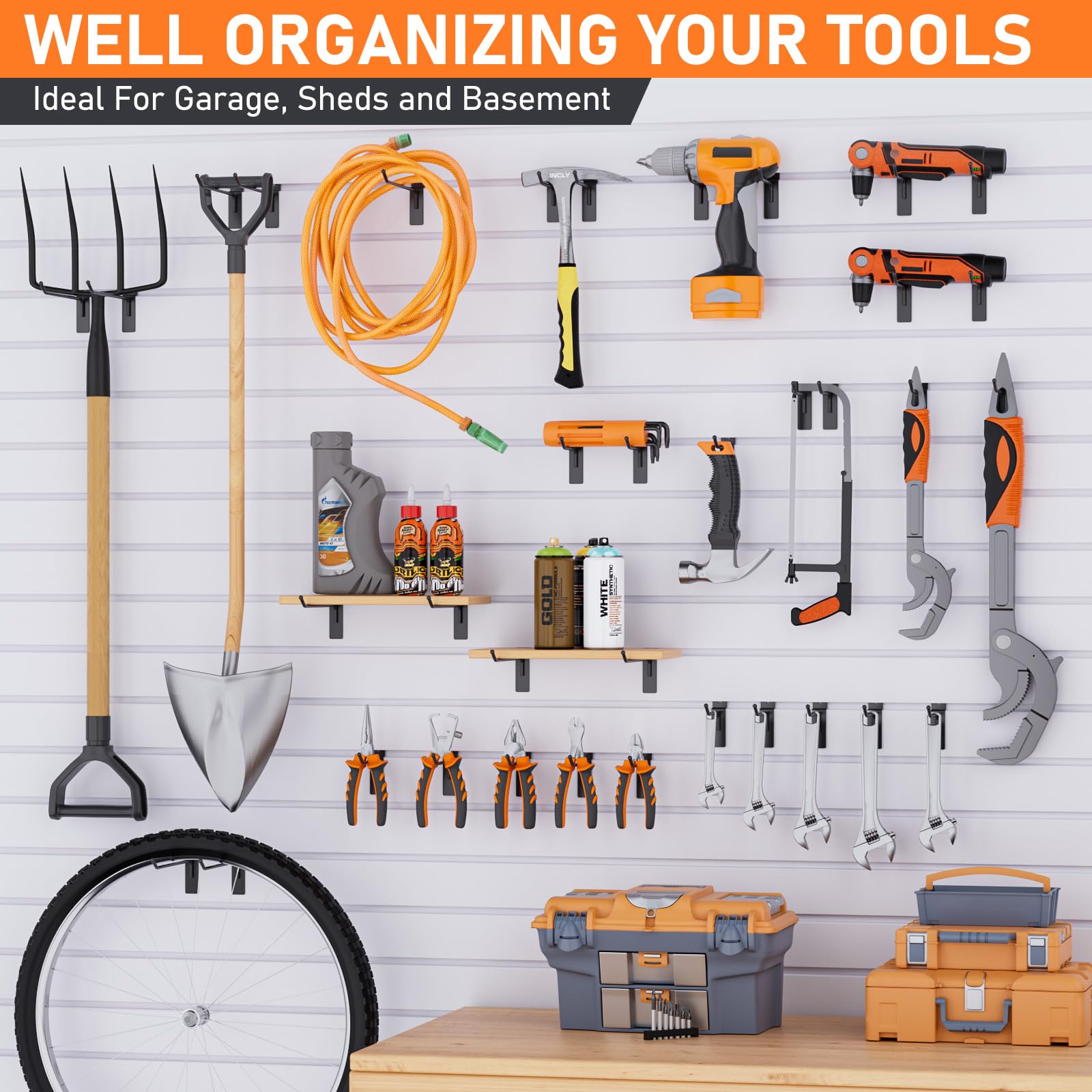 - WIDE APPLICATION: The black slatwall hooks could be arranged in a compact style on slat wall, save more space and get effortless accessible for a variety of tools or equipments. Ideal for storage solutions on a wide range of garage, workshop, basement, retail store, tool sheds, or warehouse