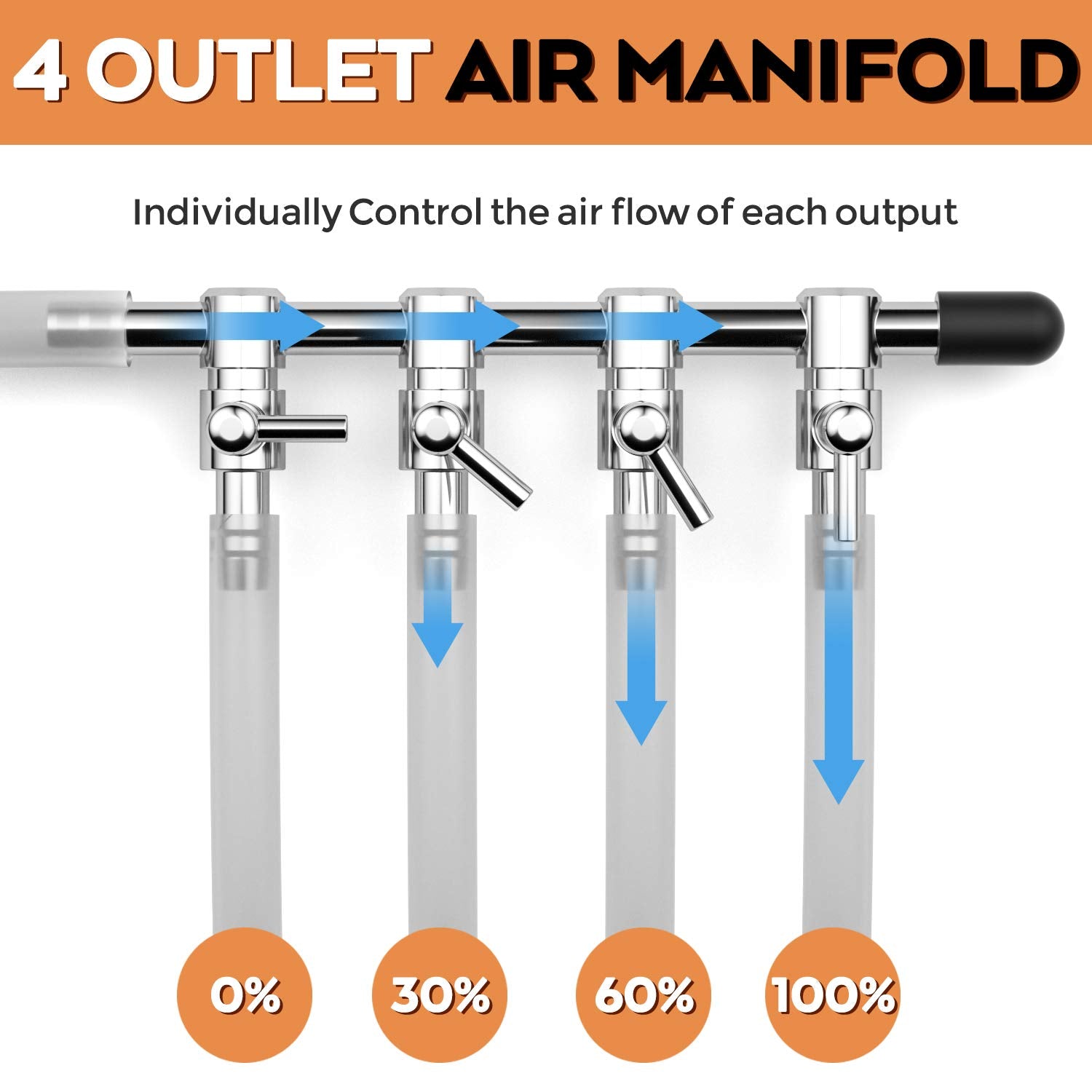 - Versatile 4 - Outlet Design: Comes with a 4 - outlet divider for precise manual air flow control. Perfect for simultaneously aerating 4 sponge filters or airstones, enhancing oxygen distribution in your tank.
