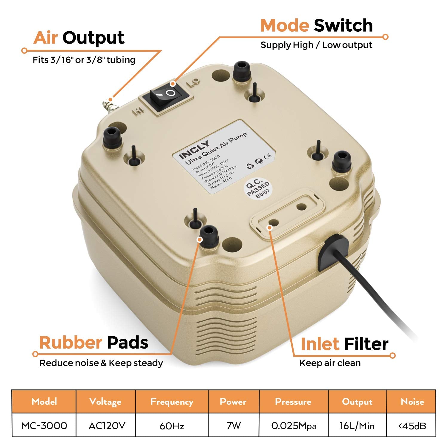 INCLY 7W Ultra Silent Aquarium Air Pump - 245 Gallon/Hr, 4 Adjustable Outlets - Commercial & Hydroponics Oxygen Bubbler for Fish Tank & Pond