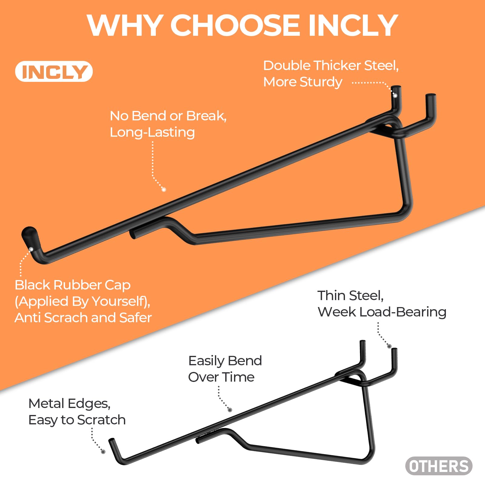 - WIDE APPLICATION: The INCLY 1/4 inch pegboard hooks are ideal for storage solutions on a wide range of garage, workbench, kitchen, craft room, sewing room, workshop, living room, office, tool shed, basement and so on
