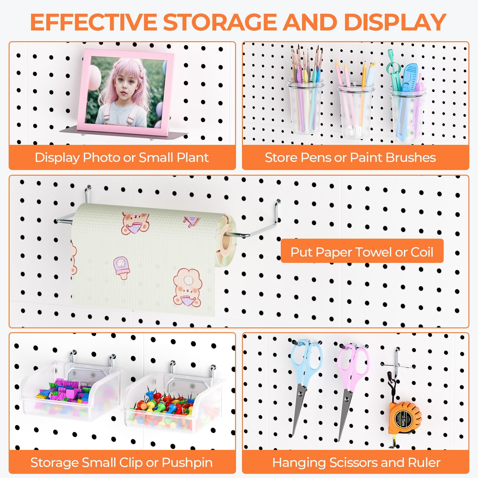 - WIDE APPLICATION: The pegboard accessories could be arranged in a compact style, save more space and get effortless accessible for what you want. Ideal for storage solutions on a wide range of craft room, sewing room, office and garage