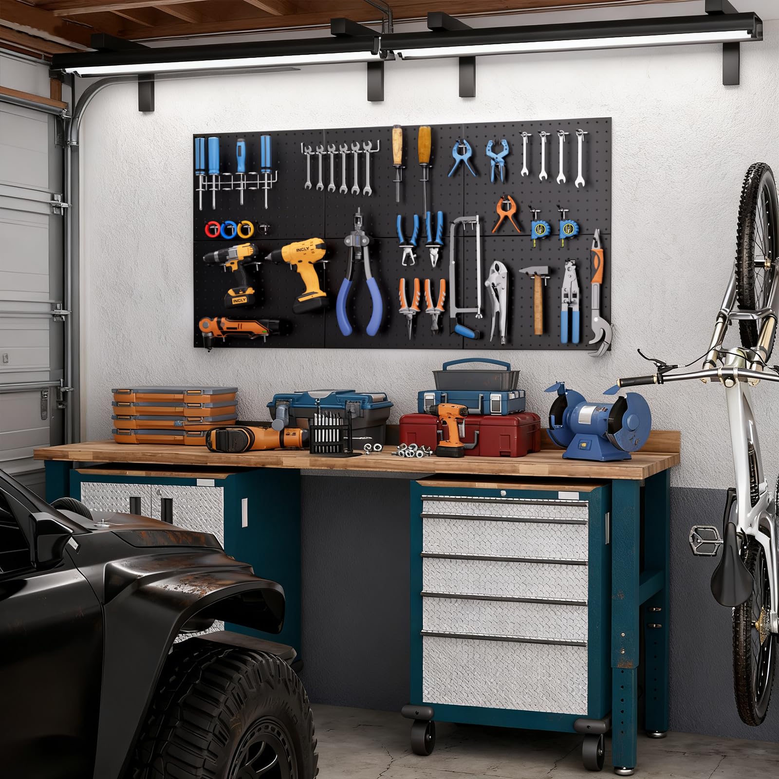 - EASY TO INSTALL: There are mounting hardware and installation guide included in package to have a clear understanding of our garage pegboard organization, all you need is an electric drill and a level to make sure they are lined up for mounting on into the wall