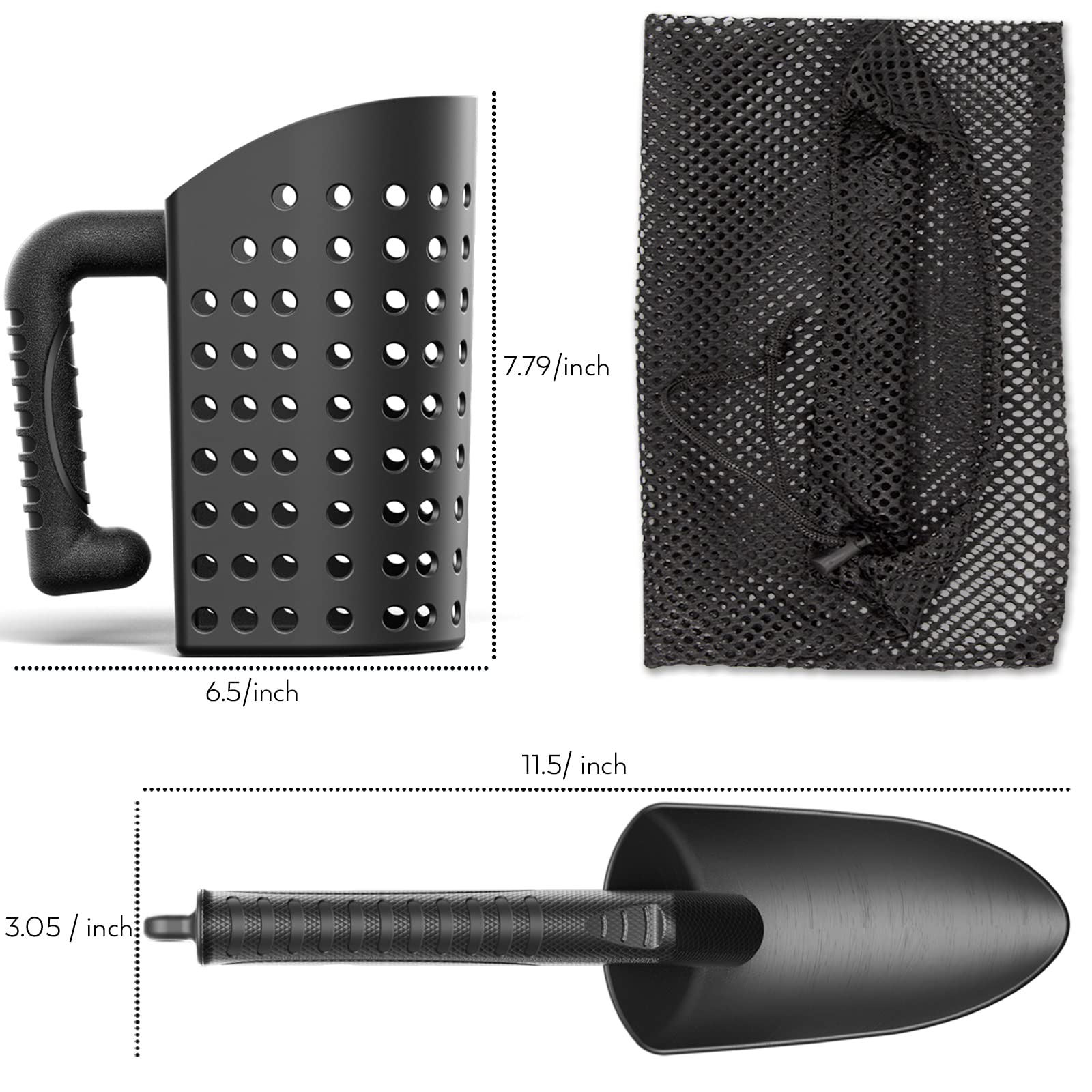 INCLY Sand Scoop & Shovel, Detecting Accessories for Kid & Adult Metal Detector, Sand Sifter Treasure Hunting & Digging Tool at The Beach & More, Black - Come with Mesh Bag