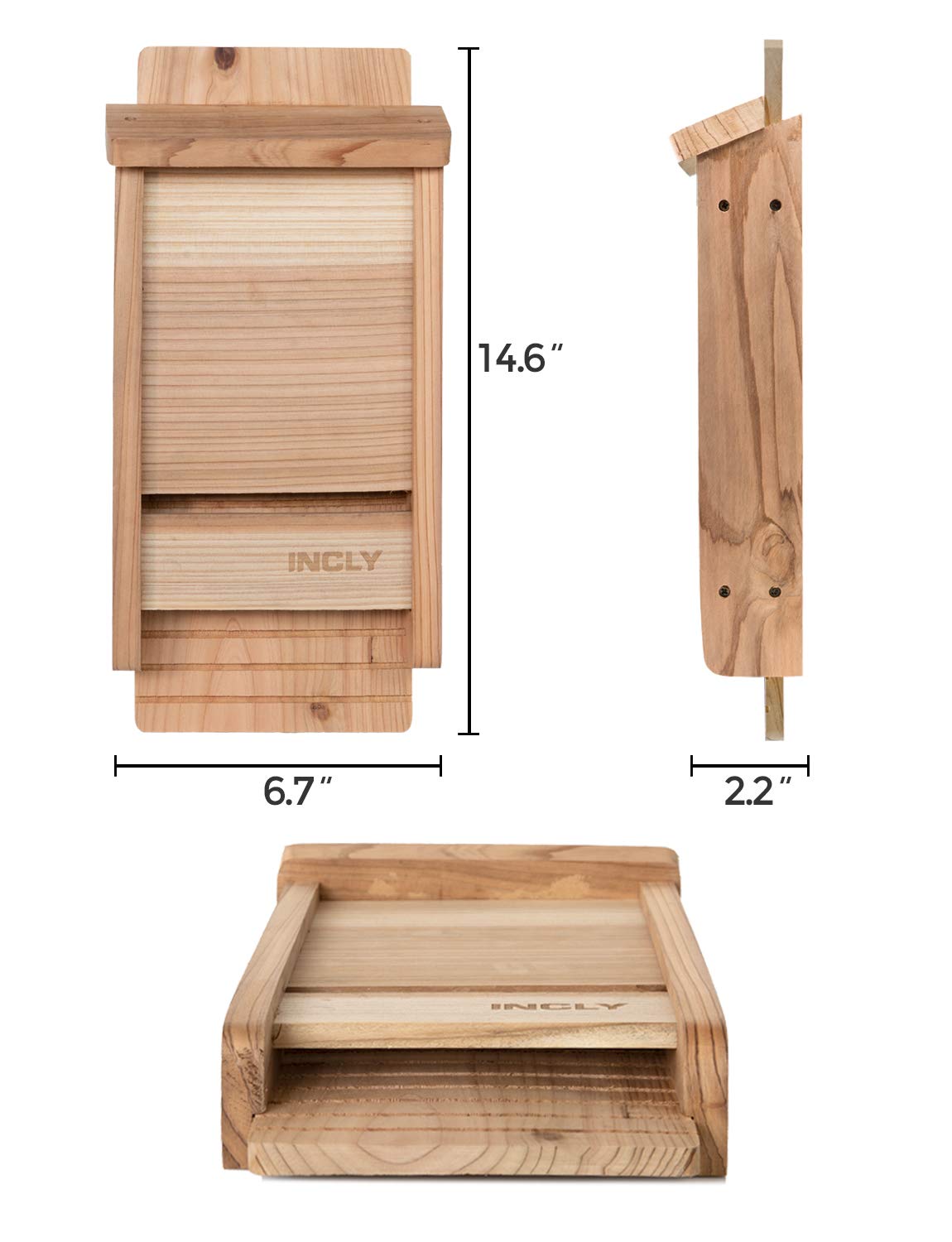 INCLY Small Bat House Kit for Outdoors 14.6"x6.7"x2.2" Shelter Box Roosting Single Chamber Natural Cedar Wood, Pre-Finished Easy to Install